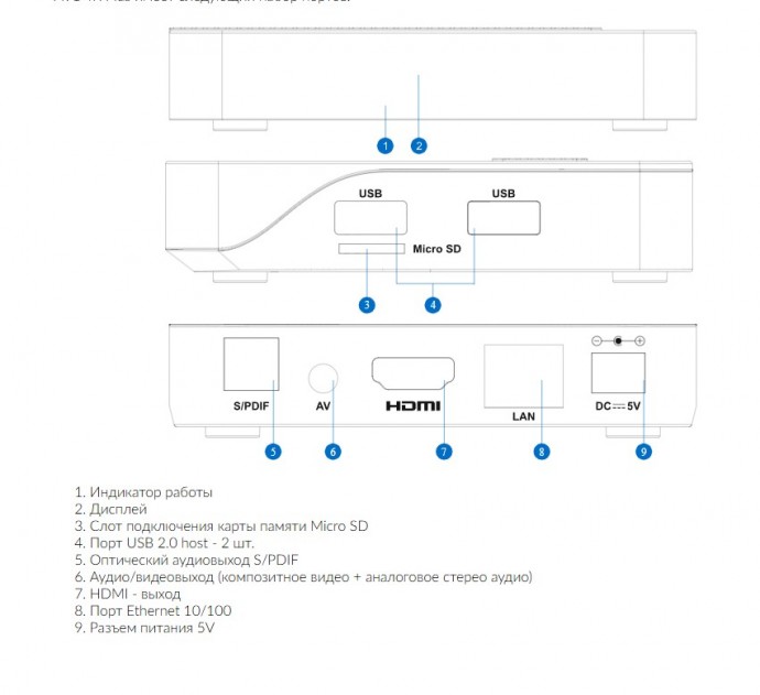 - ИК‑управление. Встроенный ИК‑приёмник позволяет управлять медиаплеером с помощью сторонних пультов или интегрировать его в умный дом через ИК‑порт (например, подключить к Яндекс Станции через ИК‑излучатель).